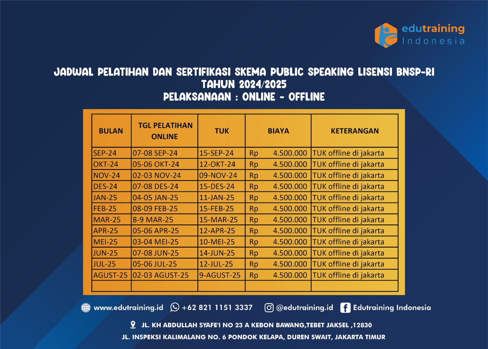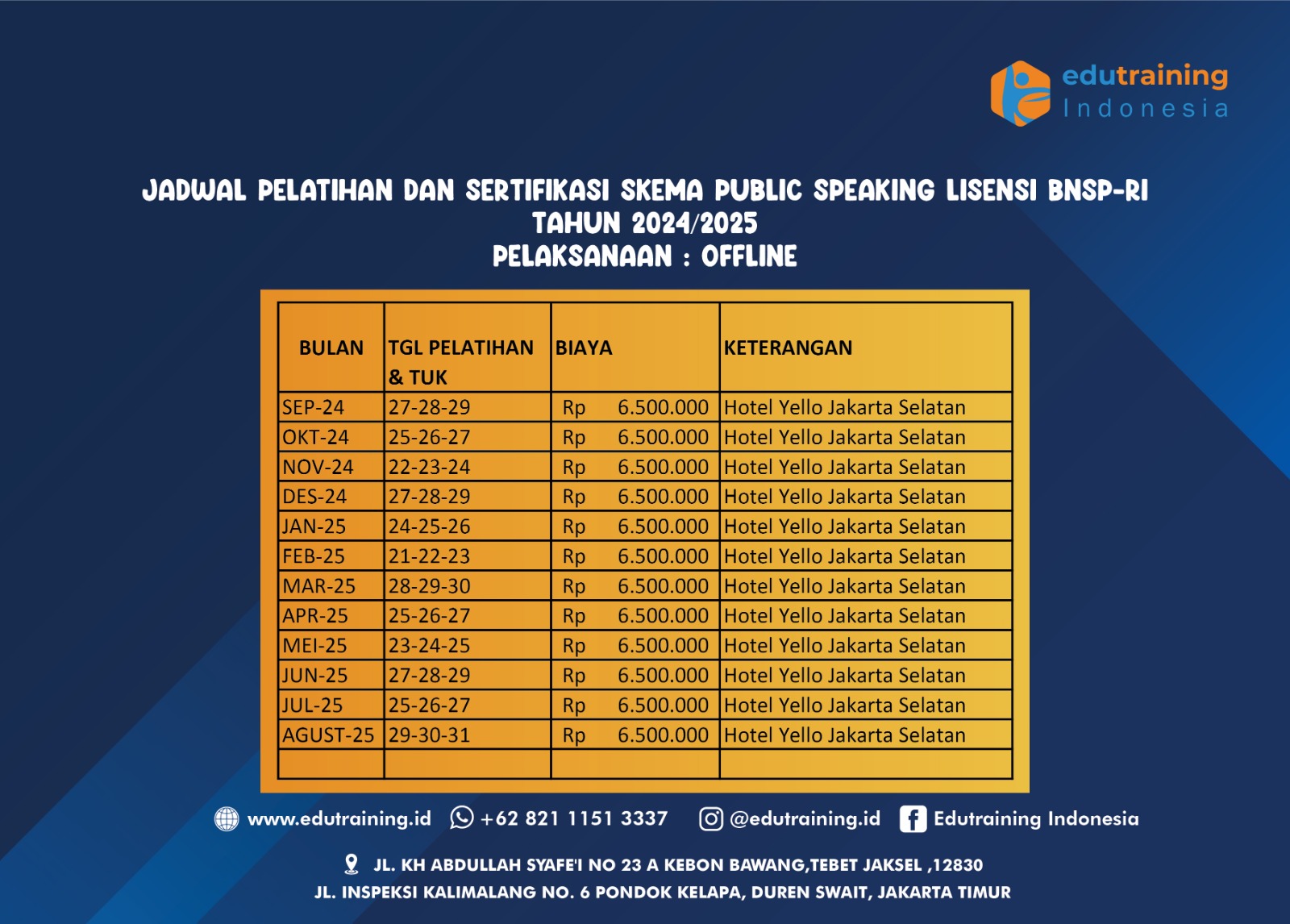 Jadwal Pelatihan & Sertifikasi Public Speaking BNSP RI